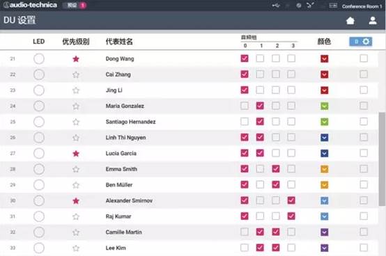 每個話筒底座都可以進行獨立編程,主席席位可以隨意設定,突破國內1+N的席位配置,并且話筒底座有多色LED顯示,隨意設置LED顏色,更加直觀識別會議人身份,提升您的會議服務,讓您 的會議更專業更細節。